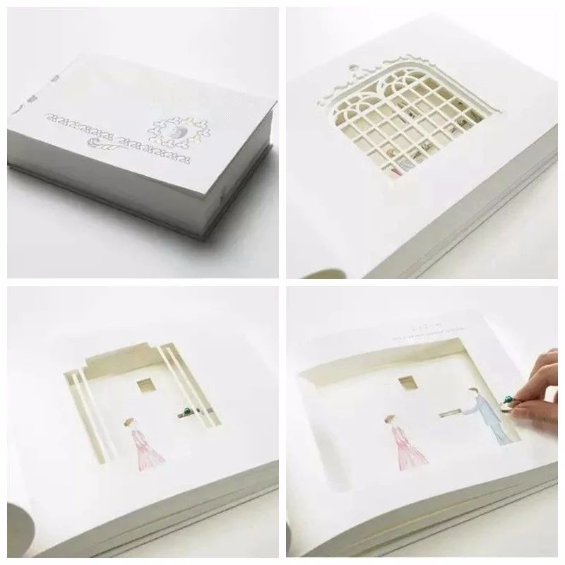 场景式戒指包装——来自日本设计师Watanabe Yoshie的创意,看上去就像是一本书,翻开它,你首先会看到一扇纸做的窗,透过窗格,男人和女人正发生着什么……忍不住把这一页翻过,就像是打开了一扇门,哈,里面是一间镂空的小房子,上面是精致的绘本,男人将戒指捧给了女人——瞧,书页就这样变成了人生的舞台,收到这样的礼物,你也会平添诸多感悟吧?