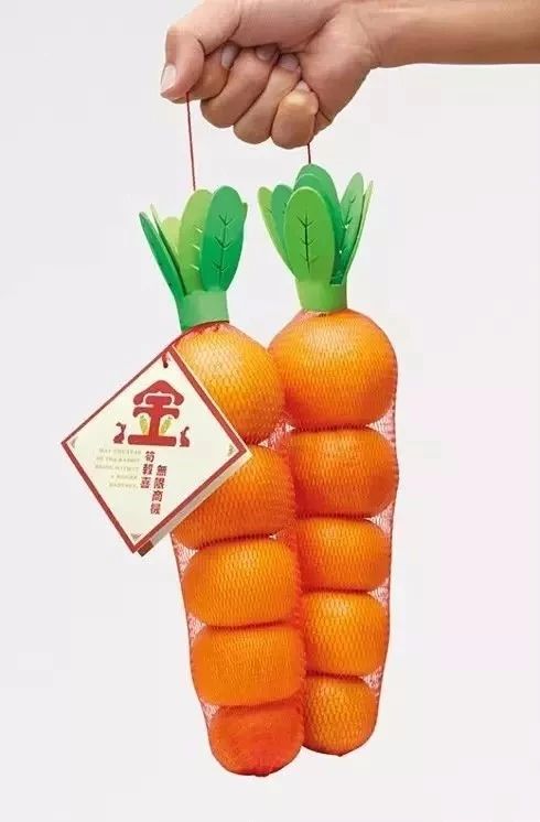 这是马来西亚广告公司Alpha 245为台湾公司制作的一个包装设计,创意橘子包装(Bigger Harvest),橘子本身装进了长长的网兜,而网兜的开口位置,则是几片嫩绿的叶片,兼做装饰和提手之用。整个包装看上去就像是一场大丰收,真是喜庆异常。