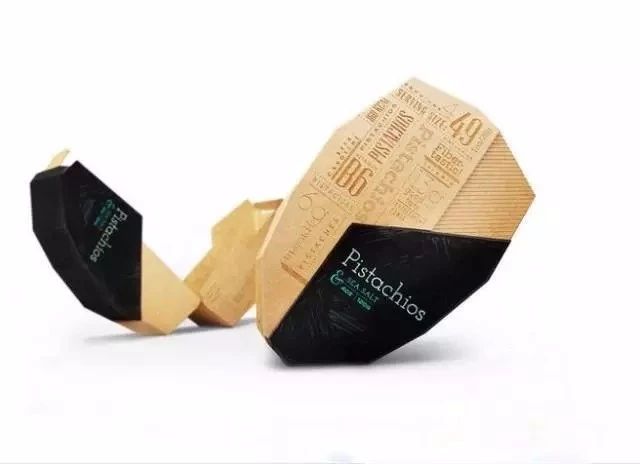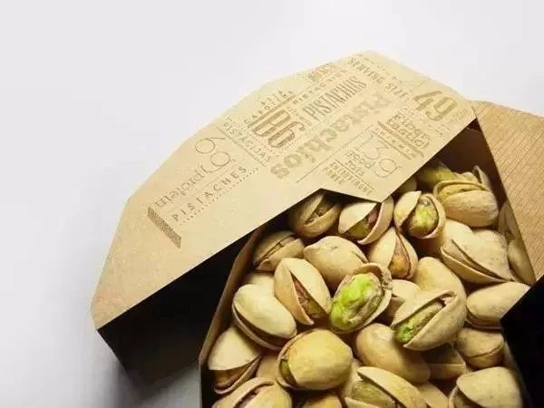 由开心果形状而产生了灵感,美国设计师 Maija Rozenfelde 索性将开心果外包装设计成一个很大的开心果,只要轻轻一剥,合拢的两瓣叶子缓缓分开,一粒粒饱满、张着小嘴的开心果就呈现出来,打开包装犹如剥开一颗开心果一样,既有趣又令人开心。