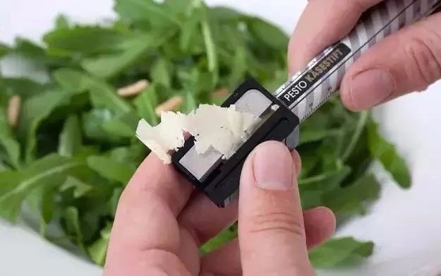 没错,这是设计师 Korefe 的奇思妙想,他还专门搭配了转笔刀,食用奶酪时,按照削铅笔的方式,放入削笔刀慢慢地旋转,笔屑一般的奶酪花随之而出,是否让你想起上学的时光?实在是童趣十足。