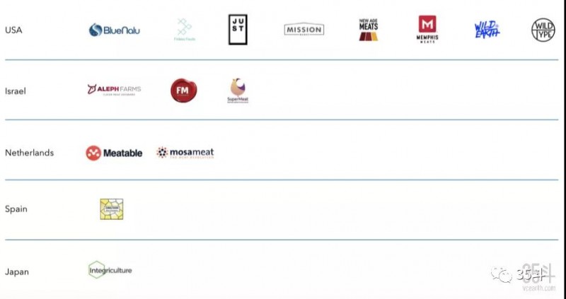 下图是在美国、以色列、荷兰、西班牙和日本五个国家完成融资的细胞肉公司。此外,下述国家也有一些尚未(或未公开)筹集外部资金的公司:加拿大、中国、法国、印度、新加坡、土耳其和英国。