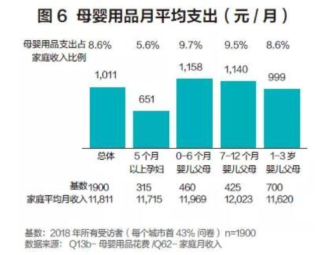 市场咨询机构尼尔森发布的《2018中国母婴用品渠道购物者趋势研究》显示,年轻父母正在刺激母婴用品消费——39%的一胎父母是“90后”,76%的二胎父母是“80后”;从怀孕5个月开始算起,母婴用品月平均支出超过了1000元。