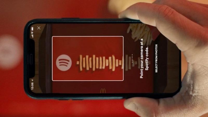 今年 6 月,巴西麦当劳还和 Spotify 合作推出薯条歌单。在托盘纸上设定“薯条代码”,只需把薯条按餐垫纸上的代码暗号排列,打开 Spotify 扫一扫就能解锁麦当劳给你准备的薯条歌单。