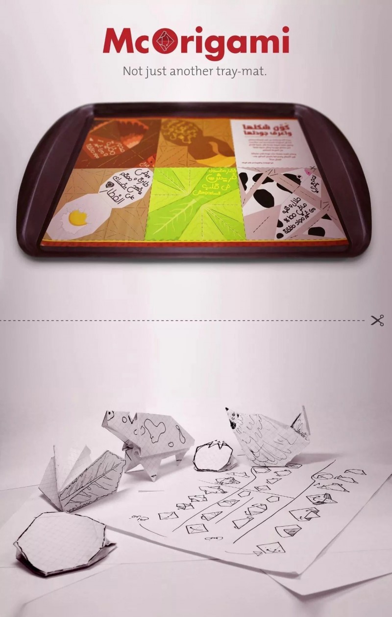 埃及麦当劳还推出过餐垫纸折纸活动: