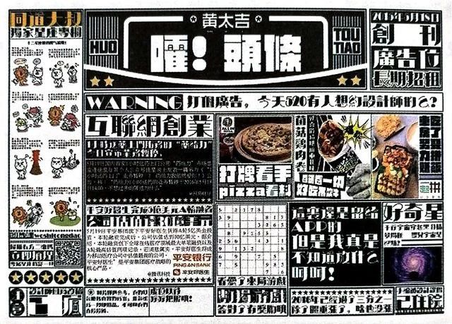同样在餐垫纸上玩创意的还有黄太吉,它把餐垫纸做成新闻报纸,上面除了品牌自己的信息,还有常见的新闻内容,如知识科普、地方习俗、赛事活动、电影上线等等,甚至还有给你解闷的星座漫画和数独游戏。