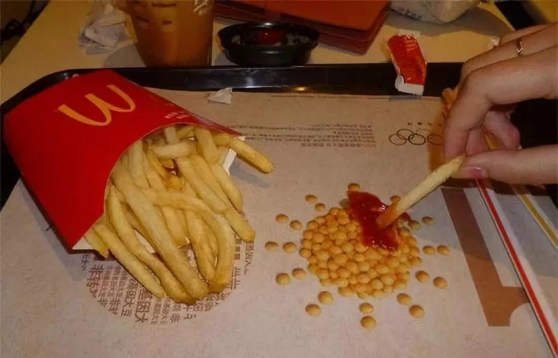 很多人去麦当劳,都习惯把番茄酱挤到餐垫纸上,把薯条倒出来。