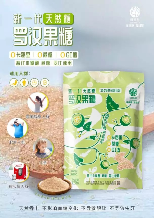 为了让消费者更好的体验罗汉果糖,通过几百次的测试调整配方比例,获得了和蔗糖相似的口感的同时保证了天然健康,将热量,糖分,脂肪全部降为零,从而推出了新一代家庭健康用途-罗汉果零卡糖!