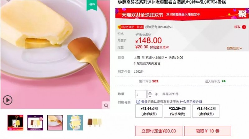 今年9月初,钟薛高、泸州老窖联名推出的白酒断片雪糕,曾一度引发市场和媒体的高度关注。目前,这款产品正在钟薛高网店预售。