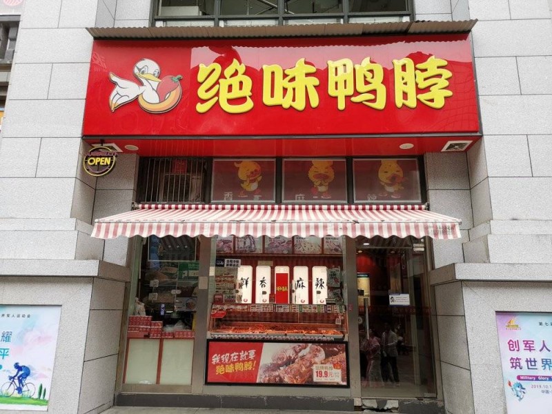 卤制品行业最大的看点一直是,究竟谁是“中国第一鸭”?此间争斗大概从2010年左右就开始了,双方各不相让,你经常能在街上或高铁站看到两个品牌门店开在隔壁的情况。媒体报道常拎这两家出来对比,却没人能定出个第一名。