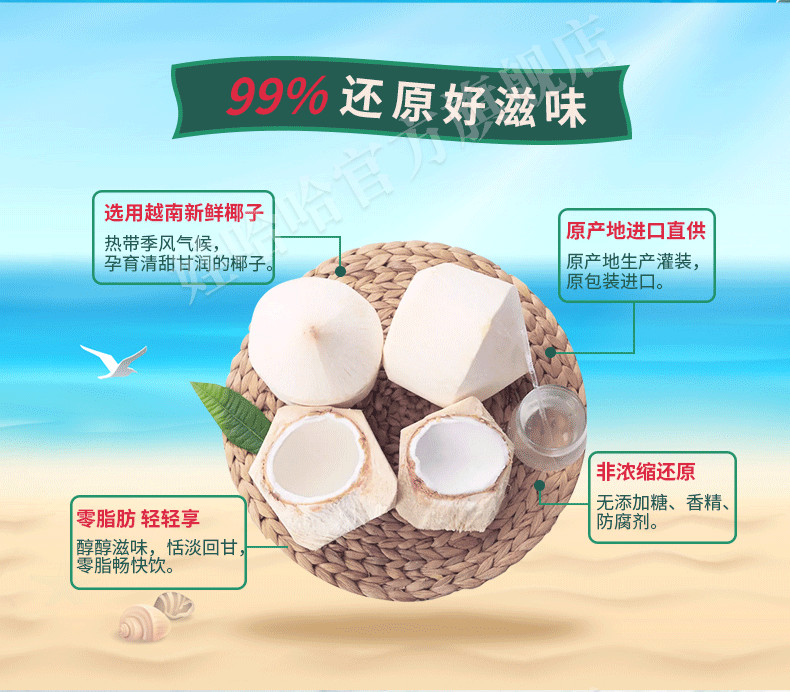 但此次推出的娃哈哈椰子水和椰子水风味饮料有着天壤之别,新品娃哈哈椰子水选用越南新鲜椰子,原产地生产罐装,原包装进口,产品非浓缩还原,配料只有椰子水、结晶果糖和维生素C三种成分,椰子水含量≥99%,是一种更健康的天然饮品。