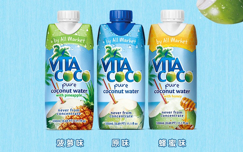 资料显示,2009年,百事公司收购了巴西最大椰子水公司Amacoco;2012年,可口可乐宣布以两亿美元收购美国第二大椰汁品牌Zico股权;2014年,华彬集团斥资1.66亿美元完成对美国最大椰子水销售商Vita Coco 25%的股份收购;2018年初,达能集团领投了美国高端椰子水品牌3000万美元融资……作为一款健康化的潜力战略单品,各大巨头争相布局。