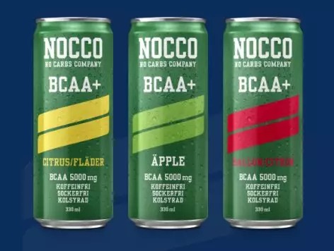 而NOCCO BCAA+系列也在原有产品基础上,在配方和包装上进行升级,与NOCCO BCAA不同的是,NOCCO BCAA+系列产品中去掉了咖啡因,并且调整将BCAA的含量提高到5000mg。同时包装上从蓝色罐装改变成了绿色罐装饮料。NOCCO BCAA+系列口味包含柠檬、苹果、树莓三种口味。唯一不变的是,饮料中不含糖,规格也同之前一样。因此运动难度更高的人们可以选择这款升级版饮品,让你无论在运动前、运动中还是运动后,都能为身体注入能量。