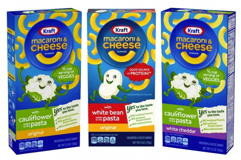 为了迎合消费者对更多植物性蛋白质的需求,卡夫亨氏在Kraft Macaroni & Cheese品牌下推出了两款新品,奶酪花椰菜通心粉Cauliflower pasta和奶酪白豆通心粉White bean pasta,将蔬菜与蛋白质巧妙地添加到受欢迎的晚餐食品中,增添了额外的营养,实现隐形健康,新品于7月上市。