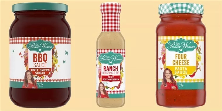 其中,Pioneer Woman调味料与蘸料拥有边境牧场风味以及辛辣西南牧场风味;烧烤酱料则包括边疆、苹果红糖、桃子威士忌和蜂蜜哈瓦那辣椒4款风味;意面酱料含有意大利香肠与辣椒、博洛尼亚肉酱、意式番茄罗勒红酱、四种奶酪及花园蔬菜等风味。