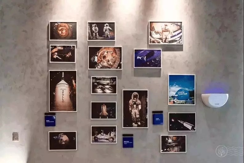 墙壁悬挂的外太空、空间站、宇航员等太空主题照片,展示了NASA探月中具有代表性的事件和瞬间,仿佛让人置身在航空纪念馆中,回味当时每一个感动的瞬间。