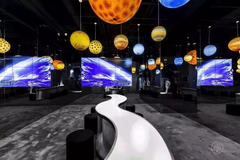 设计融入了大量具有科技感的太空元素,在兼具设计感的同时展示人类探索宇宙历史进程中具有纪念意义的影像、故事,以及航天相关的展品、体验装置等。