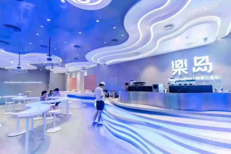 坐落于上海思南公馆35号的「楽岛」咖啡馆,是网易云音乐和瑞幸咖啡联名的主题店铺,每一个卡座配着耳机,让人们在喝咖啡之余能听听音乐,结合音乐体验和咖啡元素。