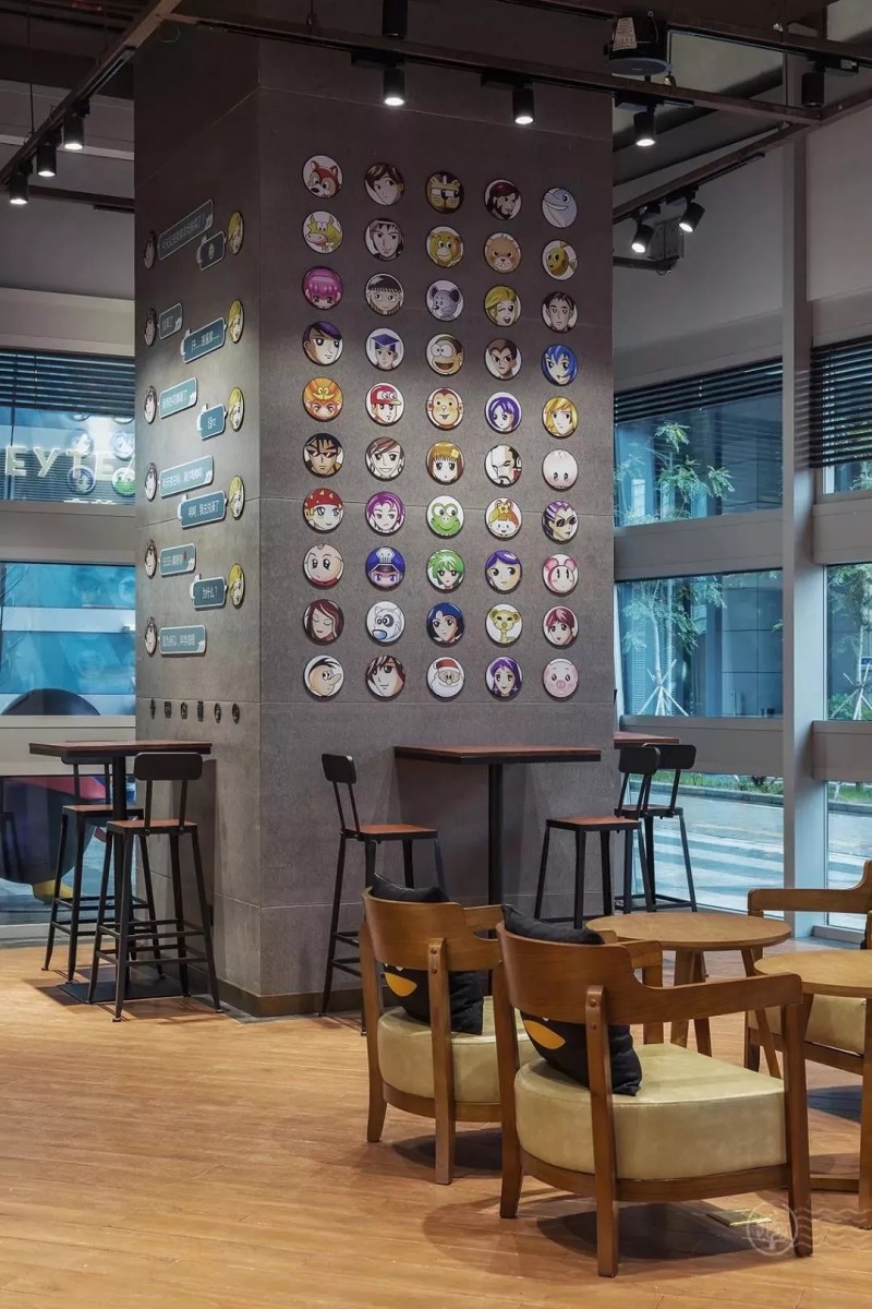立柱上装饰有充满时代特色的QQ聊天对话框和50个经典QQ头像,将青春回忆“打印”到店内。