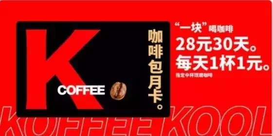 最近,快餐业巨头的肯德基推出咖啡月卡。——只需要28元,就可以提供持续30天、每天一杯的指定咖啡。也就是说,消费者获得一杯咖啡的价格约等于1元。