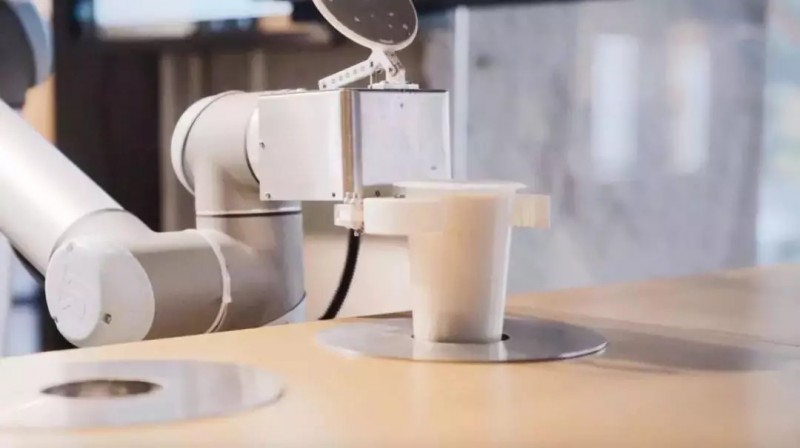 10月23日,京东物流机器人奶茶馆在北京前门大街开业。其取杯、调制、搅拌、封口/盖、清洗等流程完全由机器人操作,可以做到口味的标准化与流程的智能化,同时还有多个取货口,可实现多人操作。