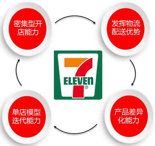 日本人口集中在各个大都市生活圈,7-Eleven的开店策略并不是全国铺开,而是在特定区域密集型开店。注重开店密度,而非数量规模,这样可以最大限度发挥物流、配送的优势,既平摊了成本,又保证了商品的齐全稳定。