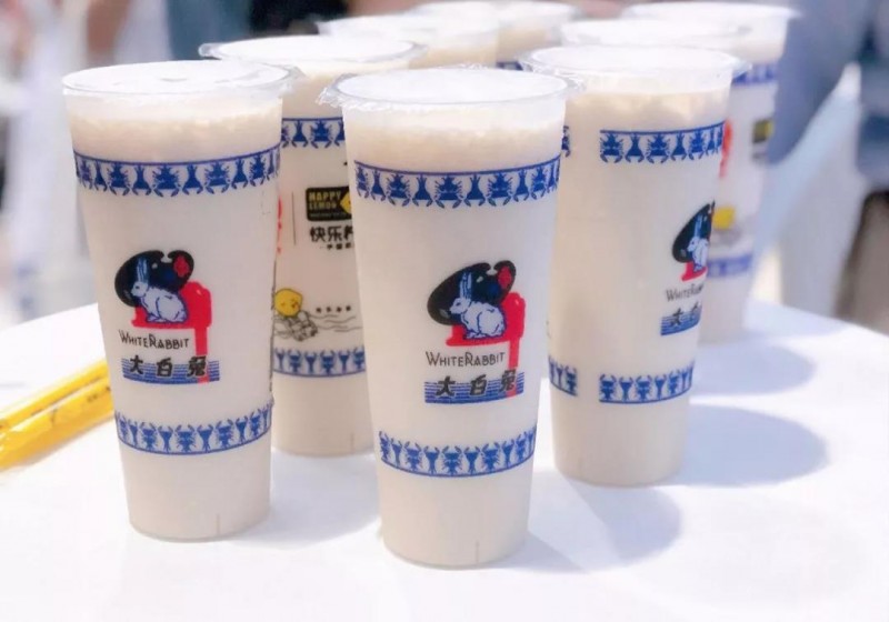 今年 5.29-8.18,大白兔在上海开了一家奶茶快闪店,推出 6 种口味饮品,2 款柠檬茶,4 款奶茶,单杯 20 元左右,限购 2 杯,包装依然是经典蓝白。