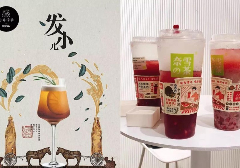 奈雪也与人民日报联名,推出了“中国正当潮”快闪店,主力产品“报款红石榴”,喊出“有为青年,看报喝茶”的口号。