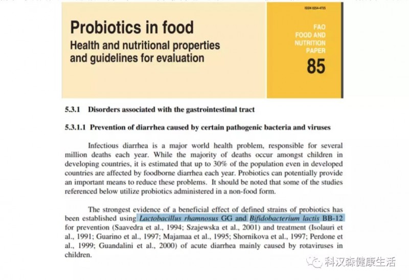 附图:联合国粮农组织文件:食品中的益生菌(文中明确提及LGG®与我们另一款产品BB-12™双歧杆菌的强功效)