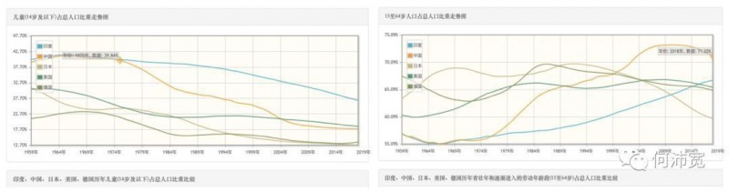 以日本数据为例,按照65岁以上人口占比27%,幼童占比不到14%来看,年轻人群占比预期会是负增长。除印度外,美国、德国、中国三国老龄人均呈上升。