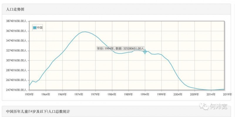 根据中国在1995年至今人口增长的曲线(14岁以下人口逐年递减趋势,如图),假设中国人口增长仍保持现在的增长速度,可推测中国在未来20年周期15-64岁人群基数保持逐年下降。对应的幼童阶段人口基数下降、老龄人口的增长趋势。