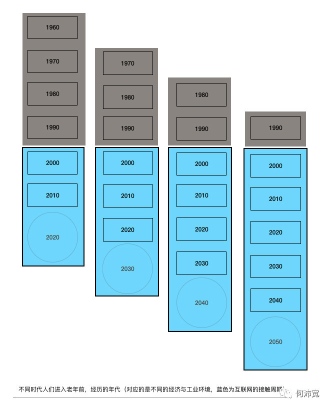 这种机会会在每一个10年(或者对应较大差异一代的时间)周期性出现——而且对于中国而言,第一个周期可以大致判断为从2020s开始。因为1960s这一代人在2020s正式步入60岁,他们的20岁在改革开放之后度过——他们是第一代(大众)能在年轻时积累富余财富,中年(40、50岁)时接触到互联网并开始建立新消费认知的老龄人群。