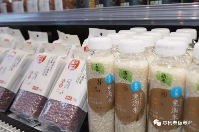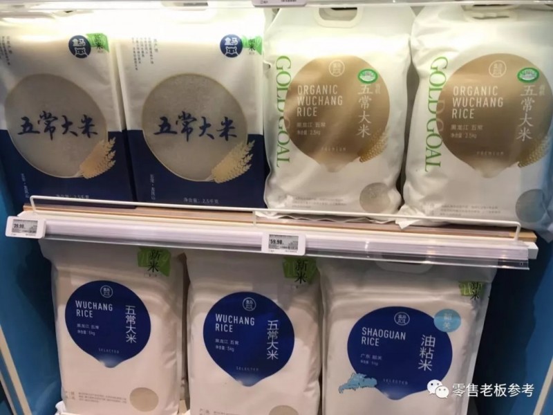 盒马第一次入手自有商品,是从一款五常大米开始的。但需要注意的是,这款五常大米从首店落地后就出现在门店的货架上,由此也可以看出,对于做自有商品,盒马从一开始就有着战略布局。