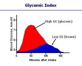 GI>75的食物为高GI食物,GI≤55的食物为低GI食物。GI高的食物由于进入肠道后消化快、吸收好,葡萄糖能够迅速进入血液,所以易导致高血压、高血糖的产生。