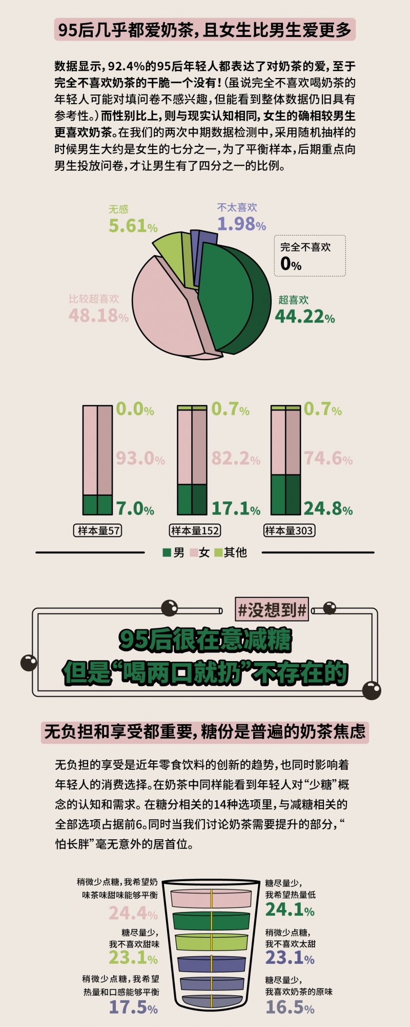 本次,最终回收了303份定量问卷,并且访问了13位全国不同地区的95后的“奶茶观”,以下是我们共同呈现的令人「没想到」的观察发现: