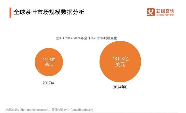 随着消费者对茶叶接受度的不断提高,预计2024年全球茶叶市场规模将达到731.3亿美元。艾媒咨询分析师认为,总体而言全球茶叶市场发展乐观,有望维持稳定上涨趋势;特别是中国消费市场在养生、健康等方面意识的增强,也将带动全球茶叶市场规模进一步提高。