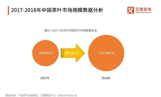 同时,2018年中国茶叶市场规模突破2000亿元,增长率为10.7%。艾媒分析师认为,中国茶叶市场规模持续攀升,市场红利进一步提高了茶企业的经营动力。