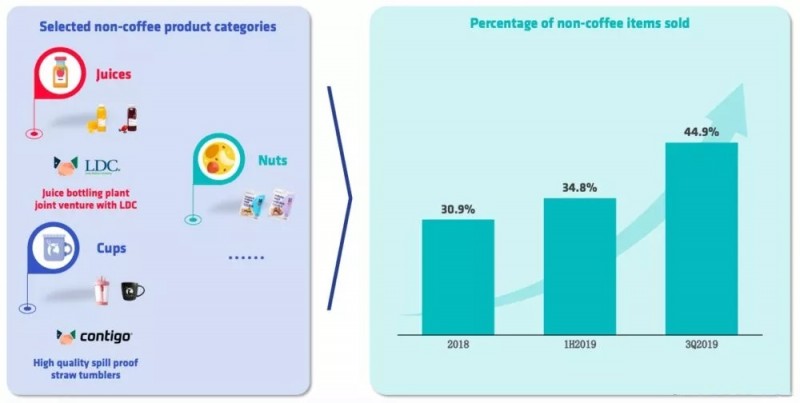 二、除了那么一杯咖啡,瑞幸还有其他东西值得买,且顾客确实会买。据财报显示,这些“非咖啡产品”占到了瑞幸营收45%的比重。