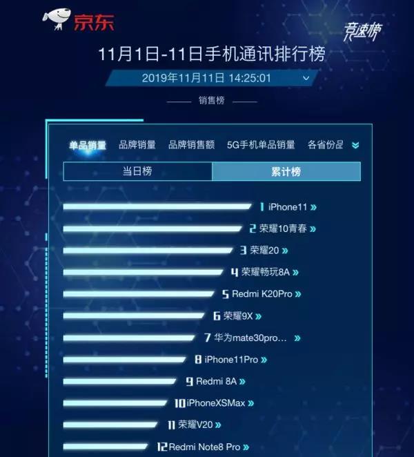 但是,仅有1200万像素的iphone11却获得了京东双十一手机销量排行榜第一的成绩。