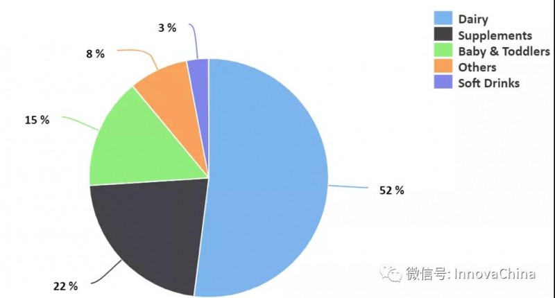 2018年间Innova数据库在全球追踪到的含益生菌的包括膳食补充剂在内的食品饮料新品中,乳制品是主要的应用品类。