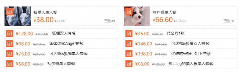 除了拥有各式各样的萌宠外,宠物咖啡馆在产品造型和名字上也试着和宠物结合,以吸猫套餐、撸狗套餐命名。