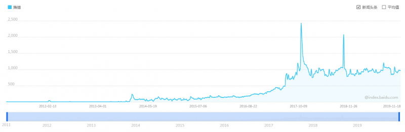 通过百度指数搜索,我们发现“撸猫”“吸猫”热潮是从2017年才开始兴起的,猫咖狗咖等宠物咖啡馆也同时出现。