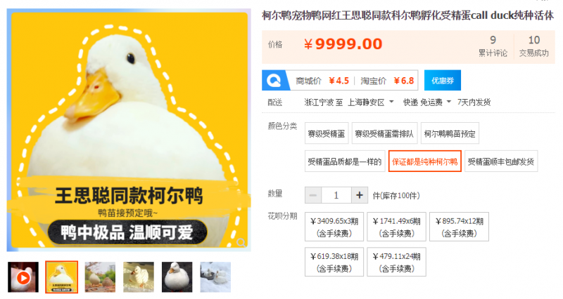 一家专卖柯尔鸭的网店 图源:截自淘宝