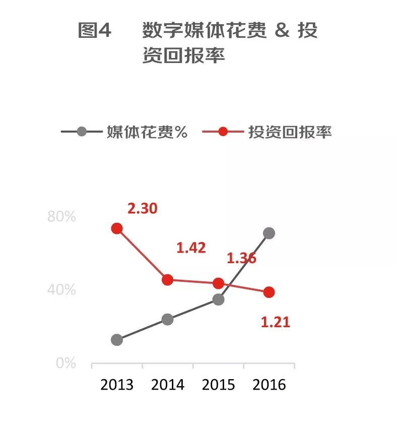 由于线下销售规模庞大,双引擎全渠道动力将成为新常态。然而近几年数字媒体全面投放效果出现疲态,数字媒体投资回报率逐年降低,因此对品牌商和零售商运营能力提出了新要求,围绕消费者的精细化运营已经成为未来增长至关重要的驱动因素。