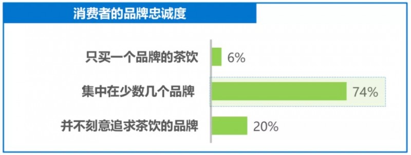 在消费频次有待进一步提升的严峻现实下,消费者对于单品牌并没有表现出强忠诚度。调研数据显示,仅有6%的受访者是特定单一茶饮品牌的“死忠粉”,而对于茶饮品牌并不感冒的消费者占比20%,此外有超过74%的消费者,会在少数几个头部品牌之间摇摆。头部品牌之间的用户竞争异常激烈。