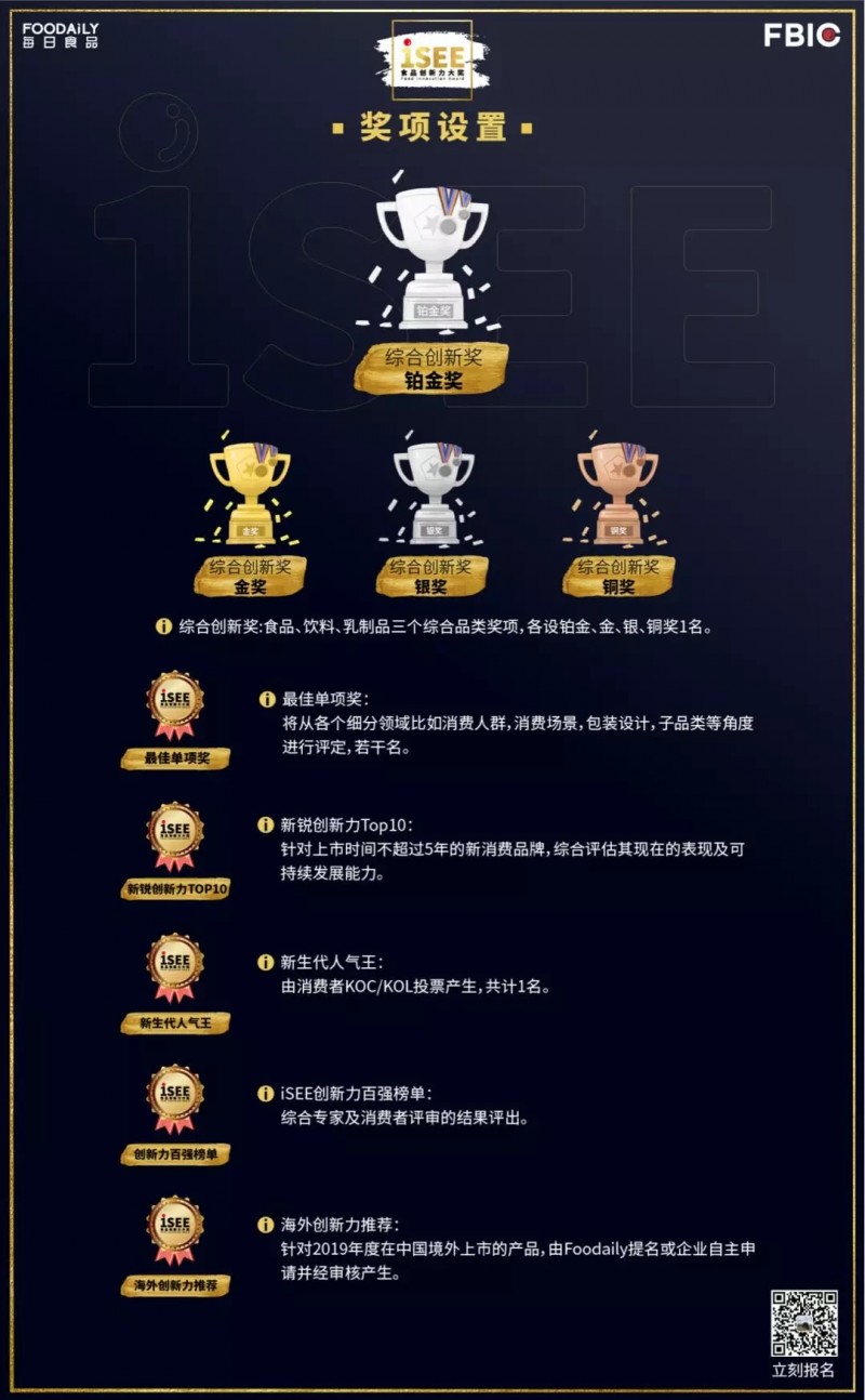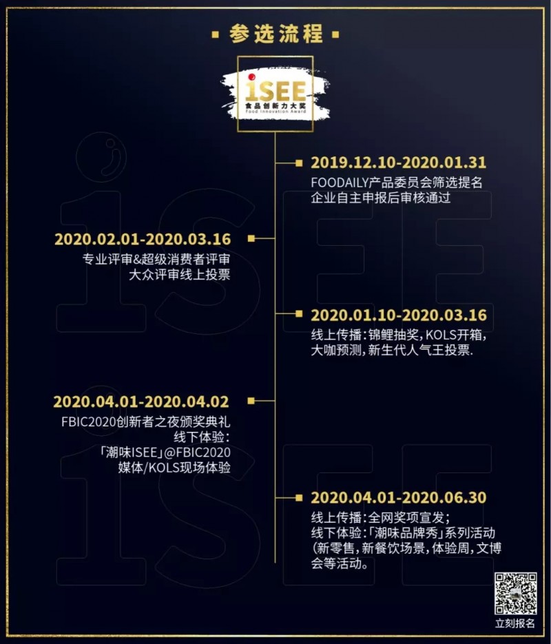 “iSEE食品创新力大奖”将从专业评审和消费者评审两个方面进行评选,分别占据80%、20%的权重。