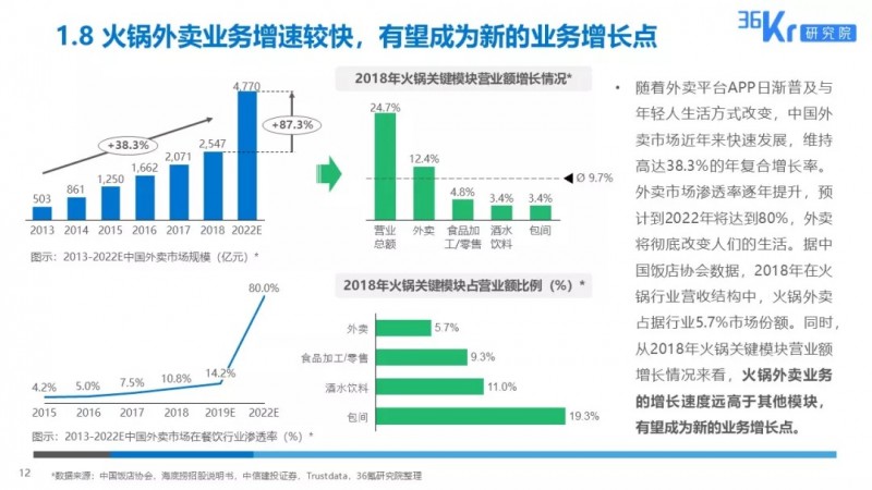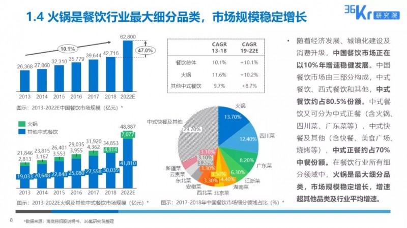 2018年我国餐饮市场规模已达到42716亿元,火锅作为餐饮行业市场规模最大的细分赛道,将在未来三年迎来超过7000亿的市场空间。