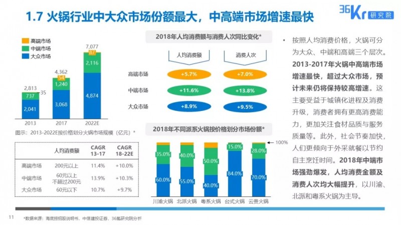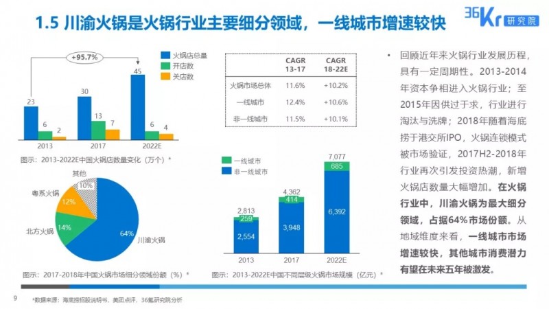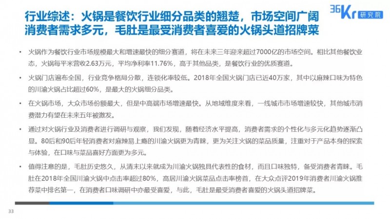 随着经济水平提高,消费者需求的个性化与多元化趋势逐渐凸显,更为关注火锅的菜品质量,注重对于产品本身的探索与体验。