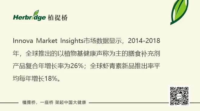 Innova Market Insights的市场数据还显示,从2014-2018年,全球虾青素新品推出率平均每年增长18%。市场研究人员指出,在含有虾青素的产品中,排名前十的健康声称包括眼部健康、皮肤健康、骨骼健康和肌肉健康。健康老去已经不再是中老年人群关注的重点,年轻消费者也已经做好未雨绸缪的准备。越来越多的年轻人开始关注自己的健康,他们认为现代生活方式和饮食习惯会增加日后出现严重健康问题的风险。同时,老年人希望尽可能保持健康和活跃的圣湖状态,并保持良好生活质量,健康被认为是实现这一目标关键途径。