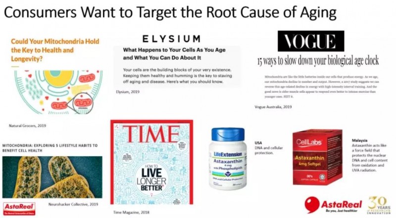 随着人们对健康寿命的期望和人口老龄化社会形势的严峻,抗衰老市场迎来快速发展的机遇,无论是基于纯粹的概念层还是有临床数据的产品层,这个话题一直都是市场关注的重点。多项研究数据显示,天然类胡萝卜素虾青素不仅可用于心脏、肌肉健康和视力等传统预防衰老的产品类别,还可以为新的产品功效类别提供应用潜力,比如运动营养产品就是一个充满可能性的品类。同时,天然虾青素在美容和益智等新兴领域的作用正在显现,市场发展空间不断被打开。