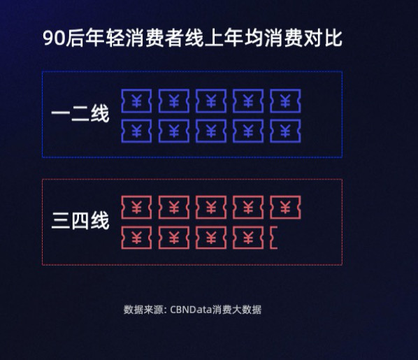 公开资料显示,过去两年淘宝天猫的年度活跃消费者增长2.08 亿,其中超过70%来自下沉市场。CBNData 消费大数据同样指出,三线及以下城市的年轻消费者规模增速明显快于一二线城市。